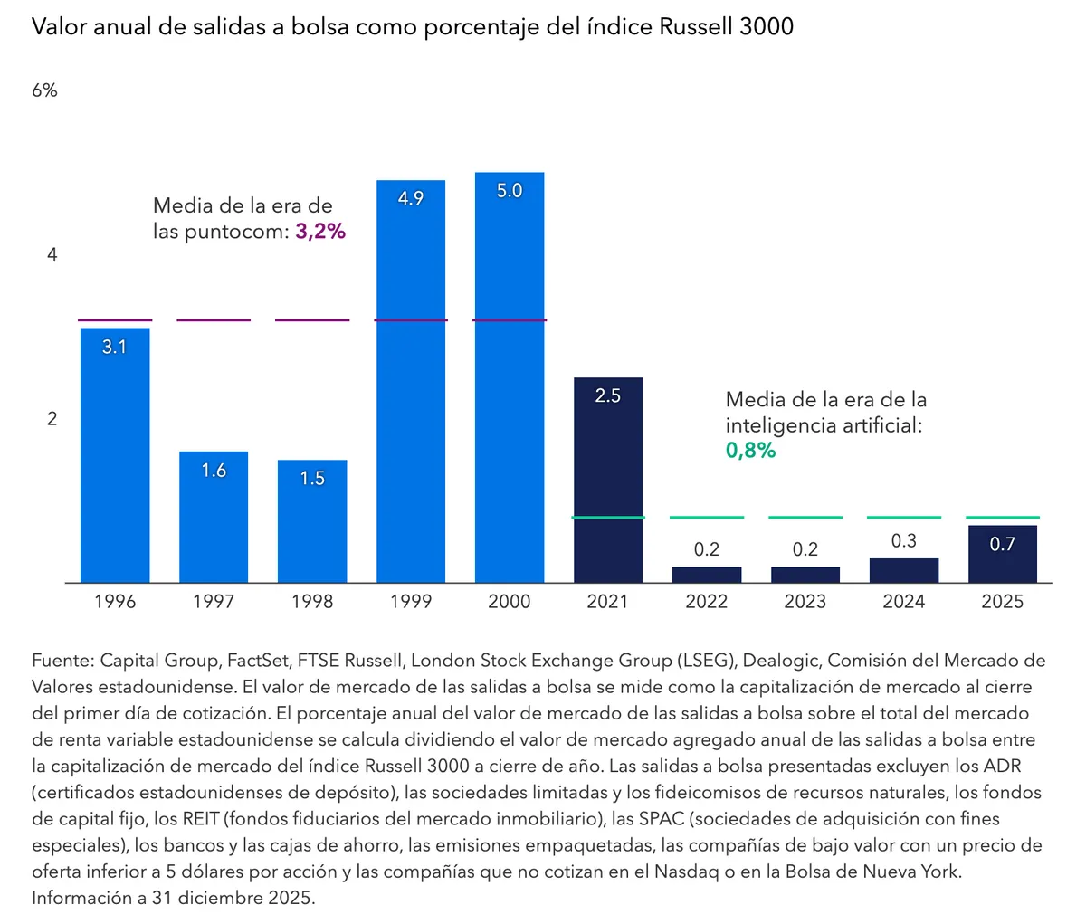 El mercado de salidas a bolsa de la época de la inteligencia artificial sigue muy por debajo del nivel máximo de la era de las puntocom