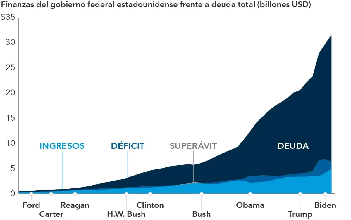 El nivel de deuda ha aumentado con todos los presidentes de Estados Unidos en los últimos 50 años