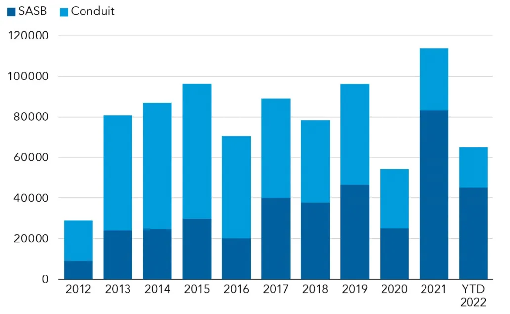 Nivel de emisión de SASB y CMBS ($mill.)