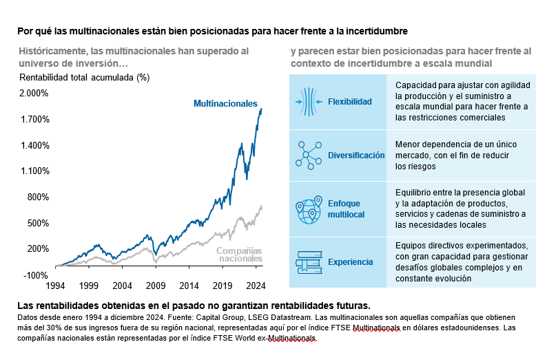 Hoy en el Gráfico de la semana de Capital Group nos centramos en el papel de las multinacionales como compañías bien preparadas para hacer frente a los cambios, sobre todo en momentos de incertidumbres y grandes cambios transformadores como la IA.