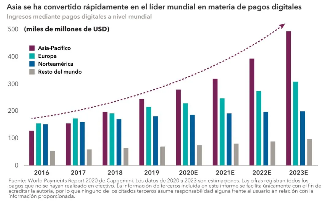 Las compañías asiáticas, por ejemplo, han adoptado rápida y ampliamente las tecnologías de pago digital y, en muchos sentidos, es Occidente quien debe ponerse al día. Como consecuencia, el efectivo ya no prevalece en muchos mercados.