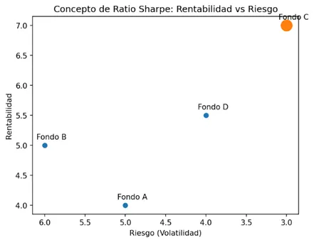 El fondo con mejor ratio Sharpe es el que está más arriba y más a la derecha (es decir, mayor rentabilidad con menor riesgo).