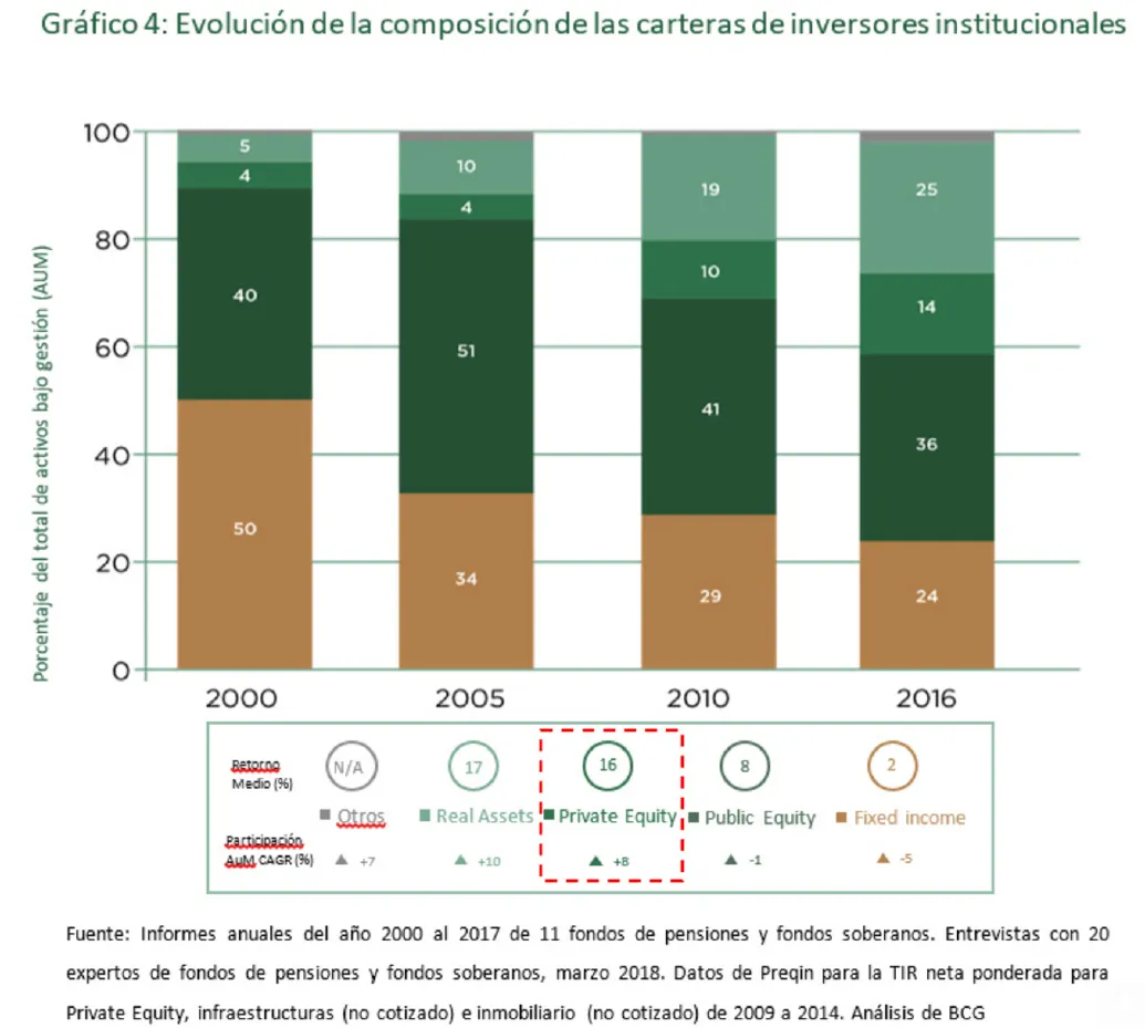Atractivo de los activos alternativos, concretamente el capital privado