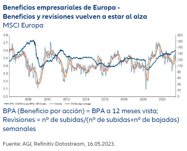Los beneficios empresariales superaron las expectativas en el primer trimestre del año, pero las previsiones de las empresas siguen siendo prudentes. Además, la evolución en EE.UU. y Europa es divergente. En resumen, seguiremos muy atentos a los resultados empresariales.
