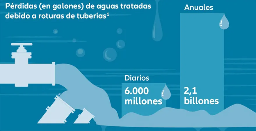 Los sistemas públicos de agua potable, aguas residuales y aguas pluviales de Estados Unidos recuerdan a una vieja alfombra de retales formada por tuberías y conductos de diferentes siglos y con distintos grados de funcionalidad. Muchas tuberías tienen casi cien años de antigüedad y están funcionado a una capacidad mayor que para la que fueron originalmente diseñadas; han superado su vida útil y pierden enormes cantidades de agua.
