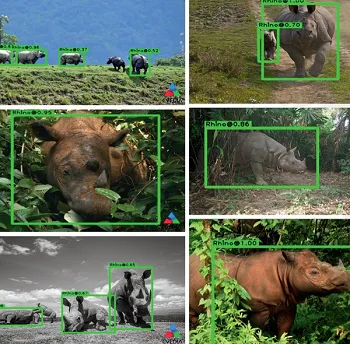 Los sistemas de alerta mediante cámaras con IA de WildEyes™, desarrollados por RESOLVE y CVEDIA, son dispositivos diminutos, ocultos a los ojos de los cazadores furtivos, que graban a rinocerontes —cuya supervivencia está seriamente en peligro— en su hábitat natural. Al activarse los sensores de movimiento de la cámara, el algoritmo informático detecta la presencia de rinocerontes o humanos en su campo de visión, transmitiendo a continuación las imágenes, prácticamente en tiempo real, a los móviles de los guardas. Estas cámaras, colocadas estratégicamente en las rutas susceptibles de paso de los furtivos, pueden ser muy útiles en la lucha contra esta lacra (11).
