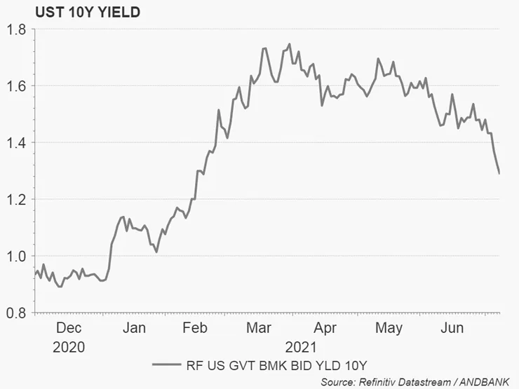 Tres meses después, con la inflación en el 5% y el crudo en 72 dólar/barril la TIR del UST ha caído casi 50pb, para “enterrarse” de nuevo en el 1.3%, provocando un contrapié de dimensiones olímpicas en el 100% de los inversores de deuda y del mercado de equity (a tenor del comportamiento de los de activos riesgo).