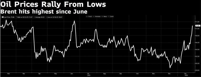 / Ruido geopolítico que se desplaza de Groenlandia a Irán, impactando en el crudo. Importancia de Irán por amenaza nuclear y situación estratégica (estrecho de Ormuz). A vigilar, siendo el crudo clave para los activos financieros y cotizando ahora con una prima de riesgo geopolítica en un mercado con exceso de oferta.