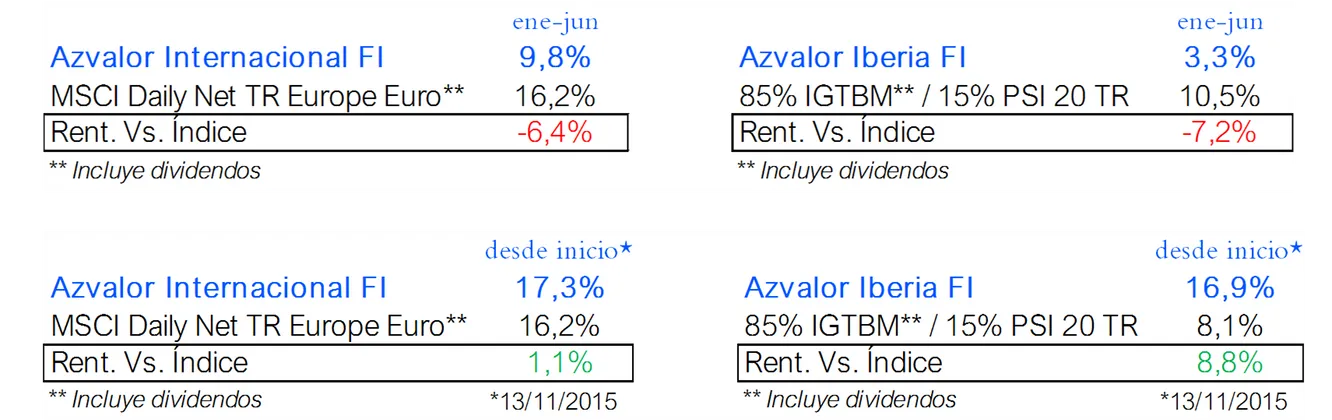 En las recientes conferencias que hemos mantenido con los gestores hemos podido comprobar su gran convicción y excitación por el potencial de las compañías, sobre las que no ha habido grandes cambios. Javier Sáenz de Cenzano, responsable en Azvalor del fondo, ha demostrado la misma convicción incrementando recientemente su inversión personal en el mismo. Les informo, además, que ya está disponible la versión “clon” en Luxemburgo.
