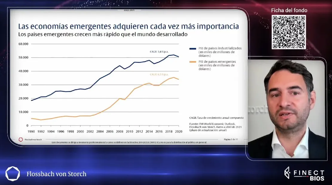También Flossbach von Storch pesca en el mar de las rentabilidades de los emergentes, aunque con un fondo de renta variable: el Global Emerging Markets Equities. La gestora germana lleva por bandera en este producto la “inversión inteligente”. China fue la única de las grandes economías que creció en el aciago 2020 y ocupa el primer lugar por exposición geográfica en el fondo (29%). El segundo es la India (13%). Michael Altinzoglou, gestor del fondo, defendió el peso en la cartera de estos países. “China está generando modelos de negocio nuevos e innovadores, como Tik Tok, e India tiene el mayor banco de talento de ingeniería del mundo”.