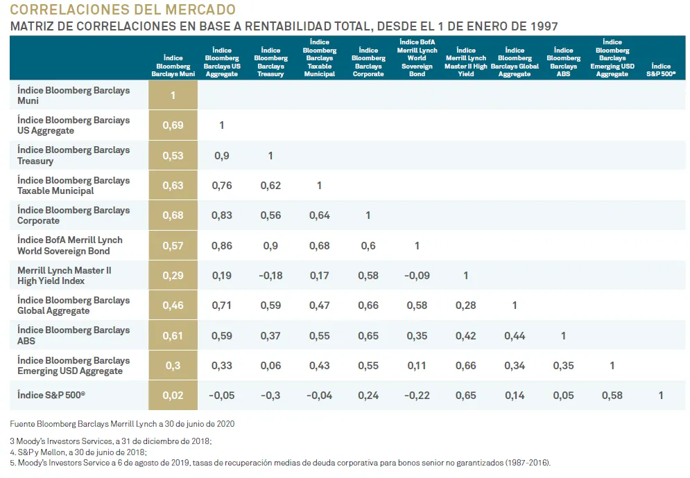 El mercado municipal también ofrece una gran diversificación respecto a los activos de riesgo, al tener una correlación negativa con la renta variable. Los bonos corporativos están correlacionados positivamente con las acciones.