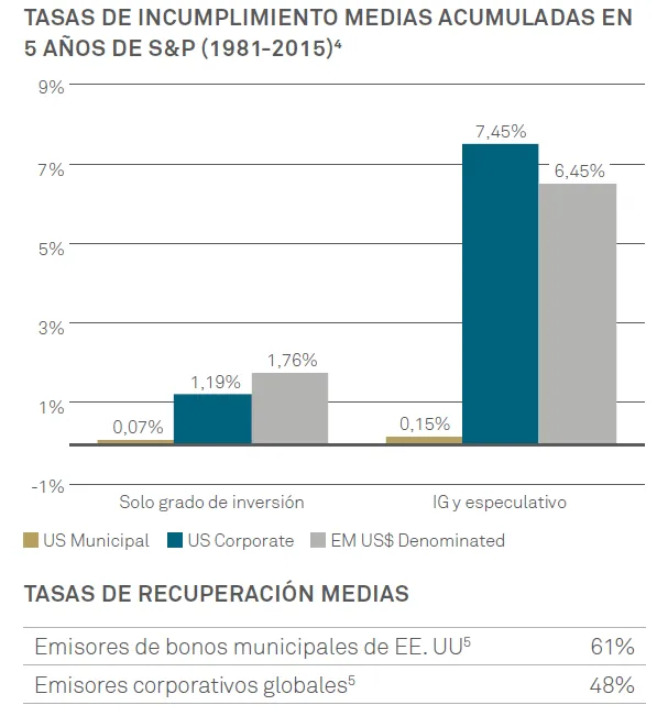 Mayores calificaciones y menores tasas de incumplimiento que el crédito estadounidense , con tasas de recuperación significativamente superiores a la media de los emisores corporativos.