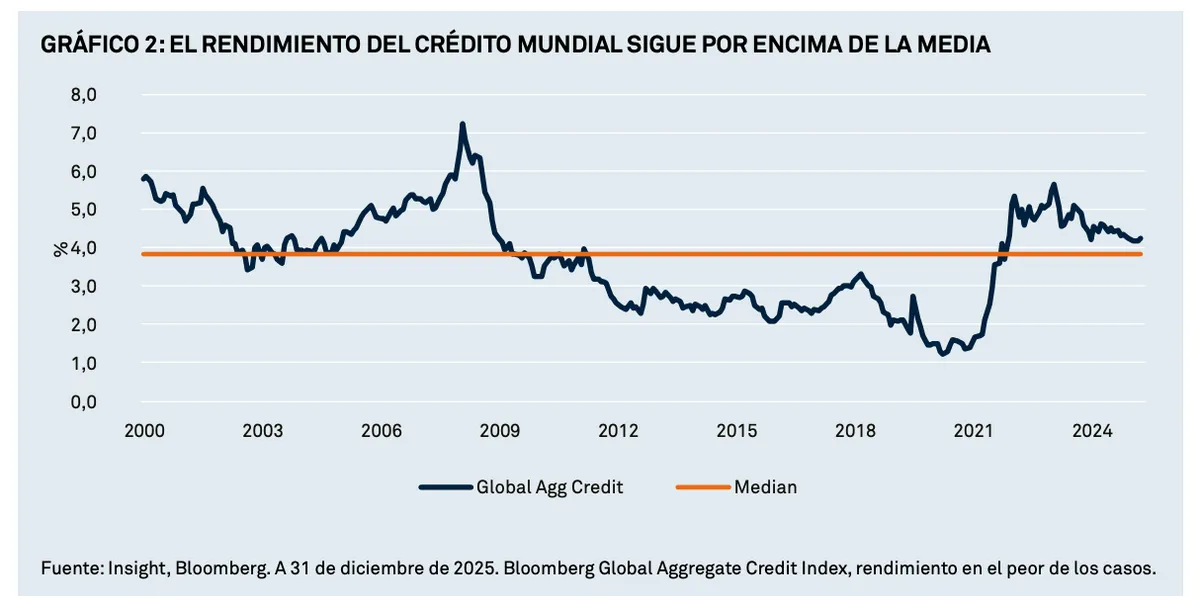 Los tipos de interés oficiales a corto plazo en los mercados desarrollados fuera de Japón se acercan gradualmente a los mínimos del ciclo actual de flexibilización, pero siguen siendo elevados en comparación con gran parte de la década anterior. Por consiguiente, alcanzar un nivel de ingresos atractivo sigue siendo un objetivo factible para los inversores. Los rendimientos de la deuda pública a más largo plazo y de los instrumentos de crédito siguen rondando sus niveles más altos en casi 25 años, superando significativamente la media desde el año 2000.