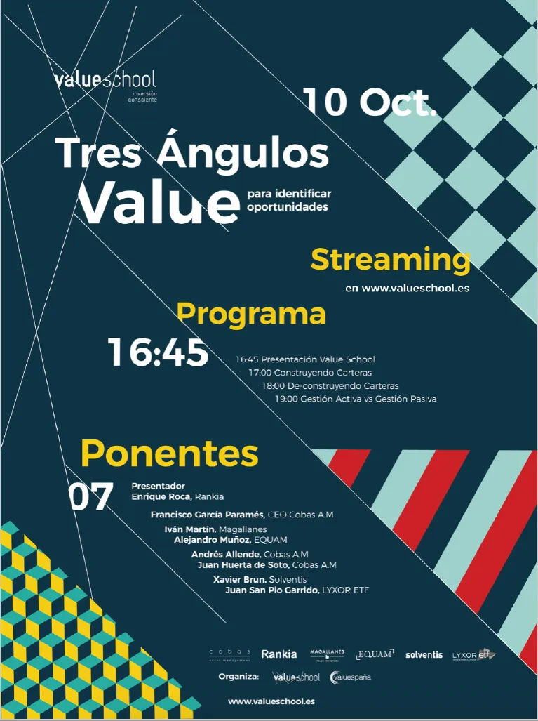 Tenemos el placer de informarle a cerca del evento de presentación de Value School, en el que participará Cobas Asset Management, el próximo martes día 10 de octubre, a partir de las 16:45h. La presentación será accesible en streaming, a través de la web de Value School www.valueschool.es.