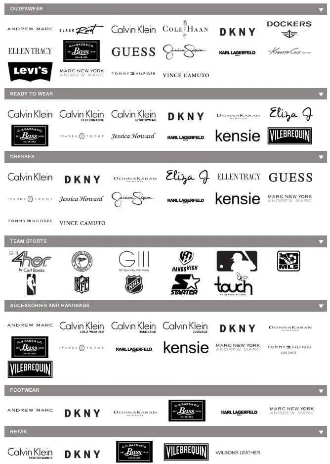 Se trata de una compañía con una cultura emprendedora que fluye a lo largo de toda la organización. Esto ha sido esencial para impulsar sus esfuerzos de diversificación y le ha permitido cambiar su modelo comercial, de ser únicamente un productor de prendas de vestir a convertirse en una compañía con una oferta de productos muy diversificada. Hoy, G-III Apparel cuenta con una cartera completa de más de 40 marcas con licencia y propiedad, incluyendo Calvin Klein, Donna Karan, Kenneth Cole, Cole Haan, Guess, Tommy Hilfiger, Karl Lagerfeld, Levi's, Dockers, Jessica Simpson, Vince. Camuto, Ellen Tracy, Kensie, Ivanka Trump y GH Bass, entre otras