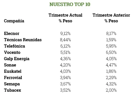 En Técnicas Reunidas hemos incrementado significativamente nuestra posición. Es una compañía que conocemos desde hace tiempo y con una calidad que está fuera de dudas. La pérdida de 2 contratos ha provocado una exagerada caída en la cotización (un 21,02% durante el trimestre), que hemos utilizado para subir su peso en la cartera.