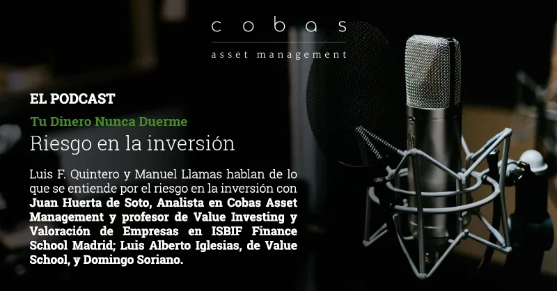 tenemos el gusto de compartir con ustedes el último capítulo del programa de inversión y finanzas "Tu Dinero Nunca Duerme", en el que Luis F. Quintero y Manuel Llamas hablan de lo que se entiende por el riesgo en la inversión con Juan Huerta de Soto, Analista de Cobas Asset Management, Luis A. Iglesias, de Value School, y Domingo Soriano.