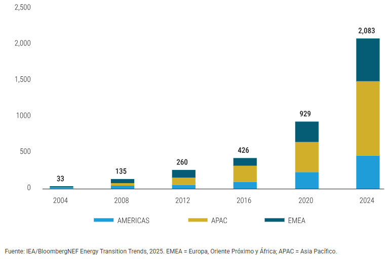 Inversión global en la transición energética en todo el mundo, 2004-2024
