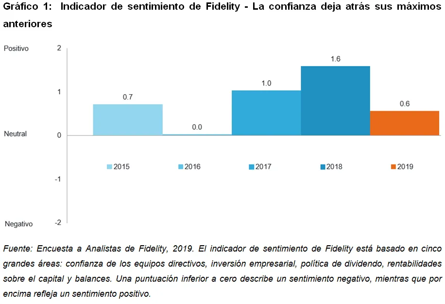 Fuente: Indicador de sentimiento de Fidelity - Encuesta a Analistas de Fidelity 2019.