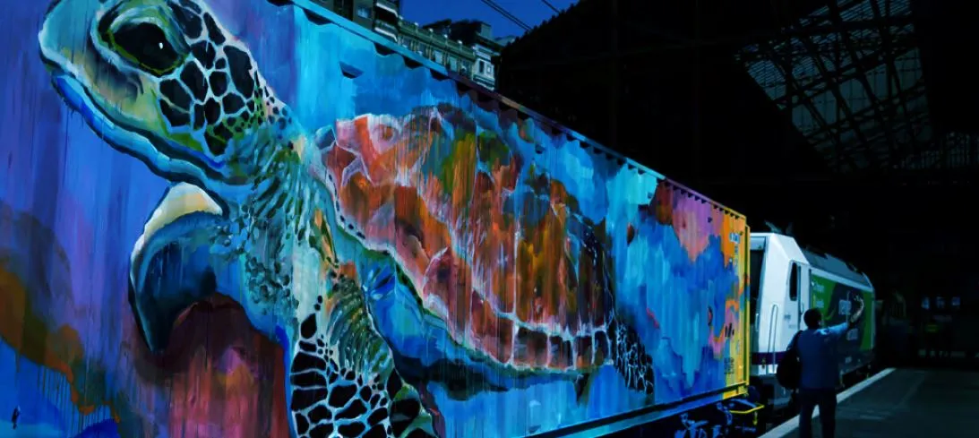 El Tren de Noé, una obra de arte móvil que llama la atención sobre los beneficios que reporta al clima transportar más mercancías en tren. (Crédito de la imagen: Gabriel Bouys / Contribuidor, Getty Images)