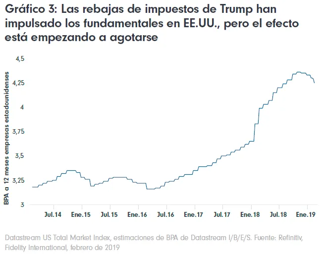 De hecho, los beneficios empresariales han vivido unos excelentes años en EE.UU. impulsados sobre todo por la rebaja de la fiscalidad. Al tiempo que se disipaba este impulso, el gasto en infraestructuras ha decepcionado y la postura combativa de Trump en asuntos de comercio internacional ha comenzado a elevar los costes para las empresas importadoras y afectado a las ventas de las exportadoras.