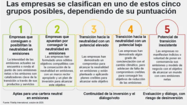 Esta salida gradual dará a las empresas la oportunidad de demostrar su capacidad de transición y se guiará por la política de Calificación Climática y compromiso de Fidelity. Si las empresas no demuestran un progreso hacia la neutralidad en un plazo no superior a tres años, Fidelity buscará la desinversión.