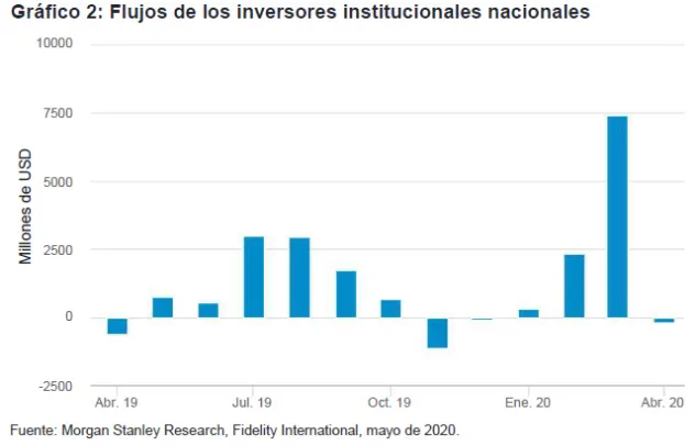 A pesar del éxodo de extranjeros, los inversores nacionales han comprado bolsa india decididamente. A fecha de 6 de mayo, el índice Sensex caía un 23% en el año después de recuperar alrededor de la mitad de sus pérdidas desde los mínimos de finales de marzo.