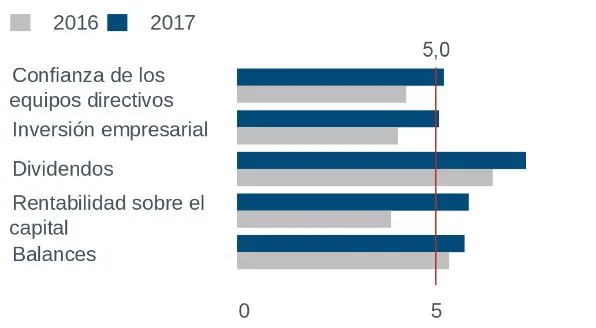 La confianza de los equipos directivos entre las empresas más grandes del mundo ha alcanzado su nivel más alto desde 2014. Además las perspectivas en materia de rentabilidad sobre el capital han aumentado considerablemente.