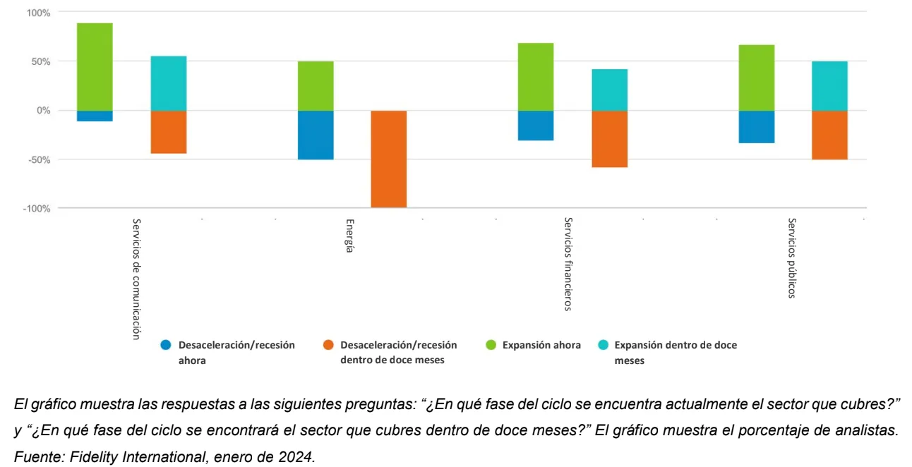 En la mayoría de los sectores, los analistas que los cubren esperan que muestren una mejoría este año; en este sentido, el porcentaje que afirma que su sector se encuentra en expansión pasa del 52% actualmente al 61% que espera que esa sea la situación dentro de doce meses.