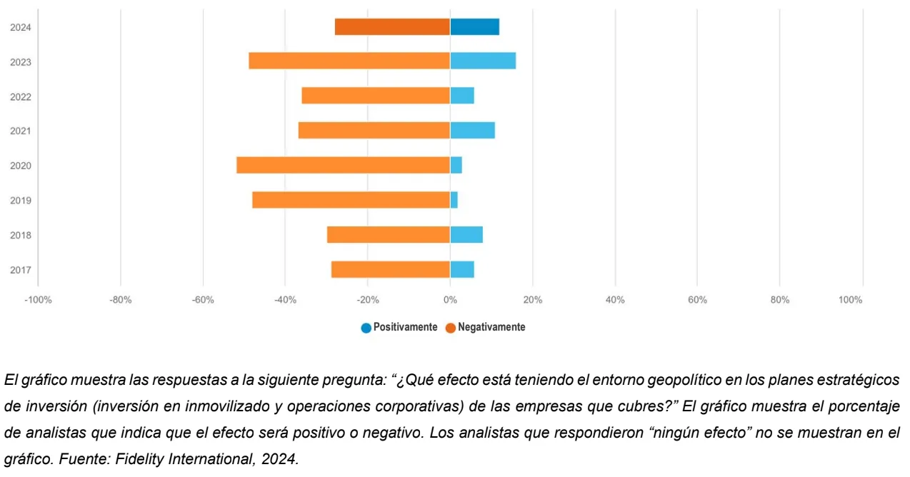 Únicamente el 28% de todos los analistas de Fidelity afirma que el contexto geopolítico actual está coartando los planes de inversión, y este es el porcentaje más bajo de analistas que lo afirman desde que comenzamos a plantear esta pregunta en 2017.