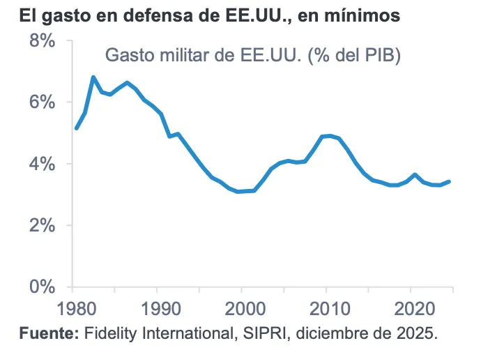 Ya se ha invertido un volumen sustancial de capitales en infraestructuras de IA. Esto debería crear oportunidades para que las empresas ágiles y con visión de futuro adopten herramientas de IA para aumentar la productividad, mejorar la eficiencia operativa y acelerar la innovación en productos. El sector industrial engloba muchas empresas de logística y redes con negocios complejos que se beneficiarán de la adopción de la IA. La dinámica del gasto en defensa también está cambiando. Europa y Japón ya han aumentado considerablemente sus presupuestos, y esperamos que EE.UU. siga su ejemplo.