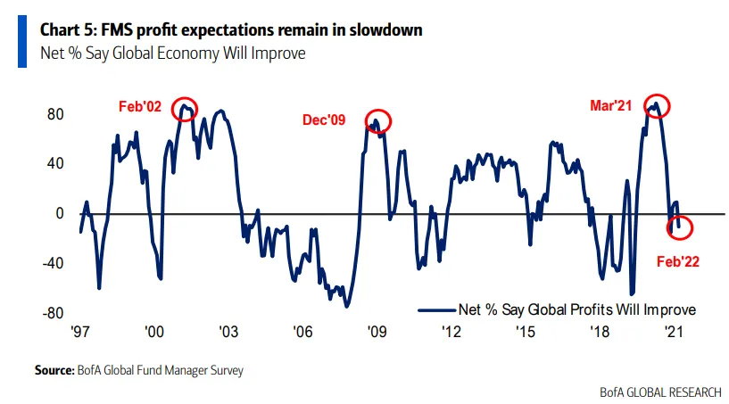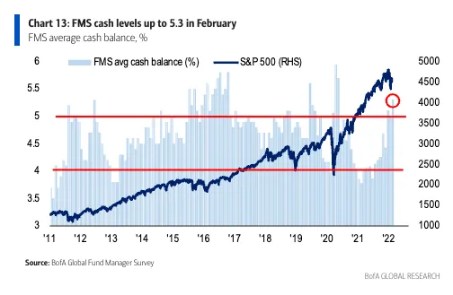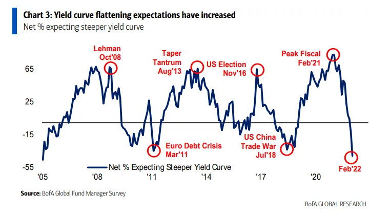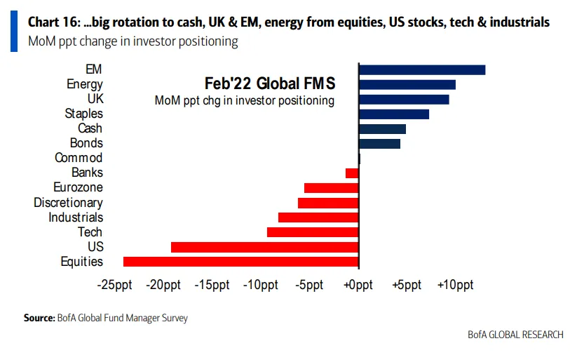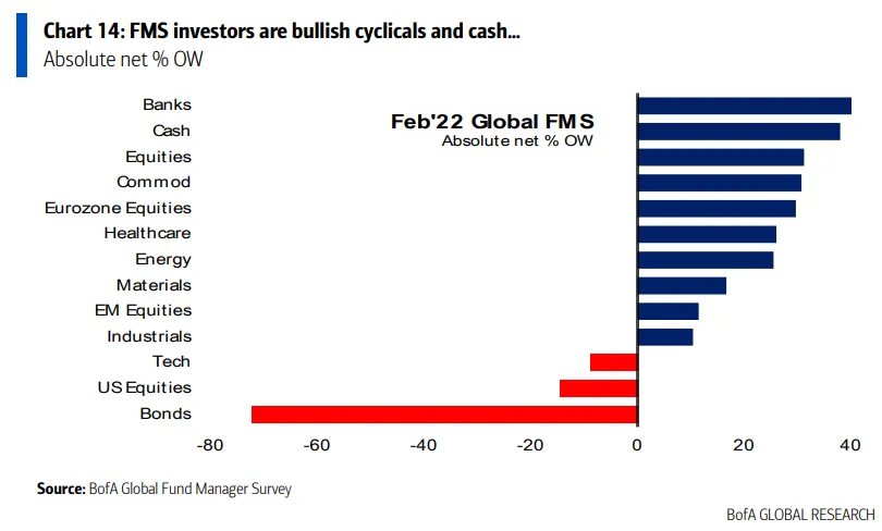 Bank of America ha presentado este miércoles los resultados de su última encuesta global de gestores de fondos, correspondiente a febrero de 2022. Un total de 314 gestores —que controlan un patrimonio de 1 billón de dólares— han participado en este sondeo, cuyo trabajo de campo se ha desarrollado entre el 4 y el 10 de febrero.