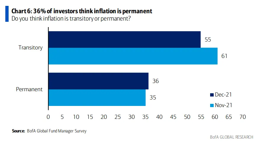 La preocupaciones sobre la política monetaria han eclipsado a otros riesgos sobre los mercados financieros, como es el caso de la inflación, el impacto de nuevas variantes del covid, como ómicron, la desaceleración de la economía en China o los temas geopolíticos. El 22% de los gestores ha señalado a la inflación como el principal problema.
