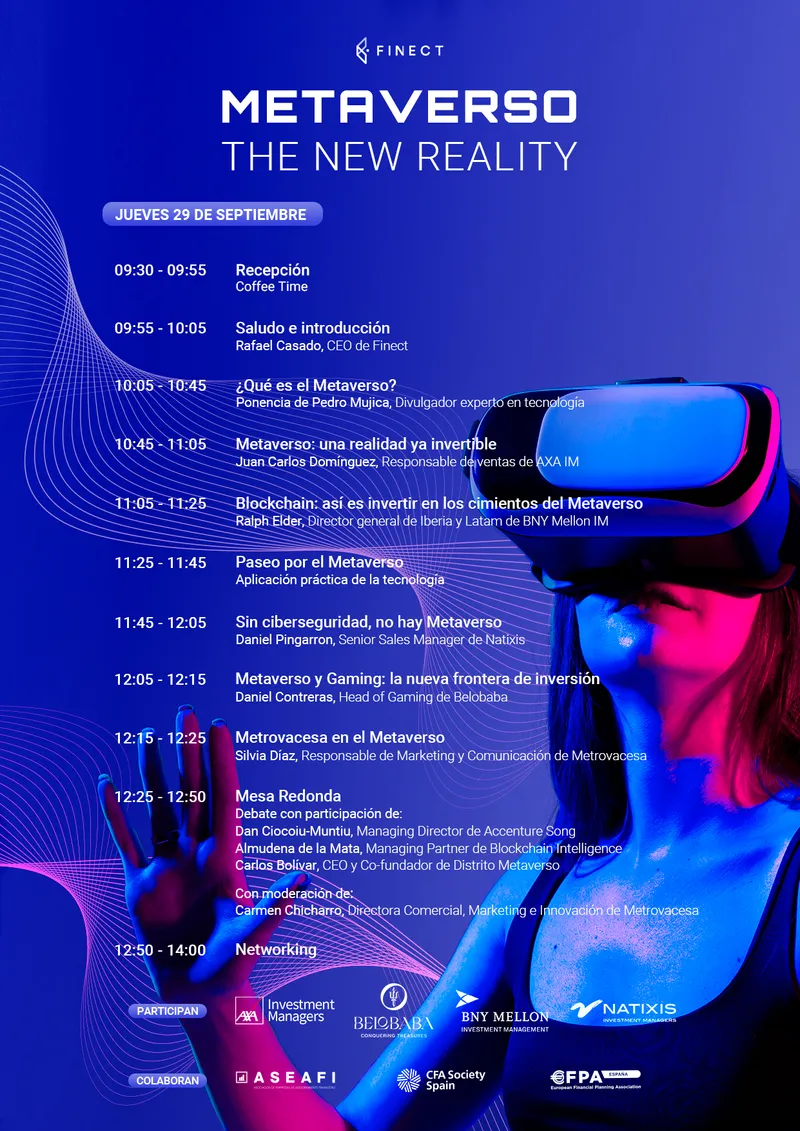 ¿Quieres saber más sobre metaverso? ¿Cómo invertir en él? ¿Por qué genera interés entre los inversores? Todas estas preguntas tendrán respuesta en Metaverso: The New Reality, un evento novedoso organizado por Finect y conducido por Pedro Mújica, consultor experto en transformación digital e industria 4.0. y 5.0.