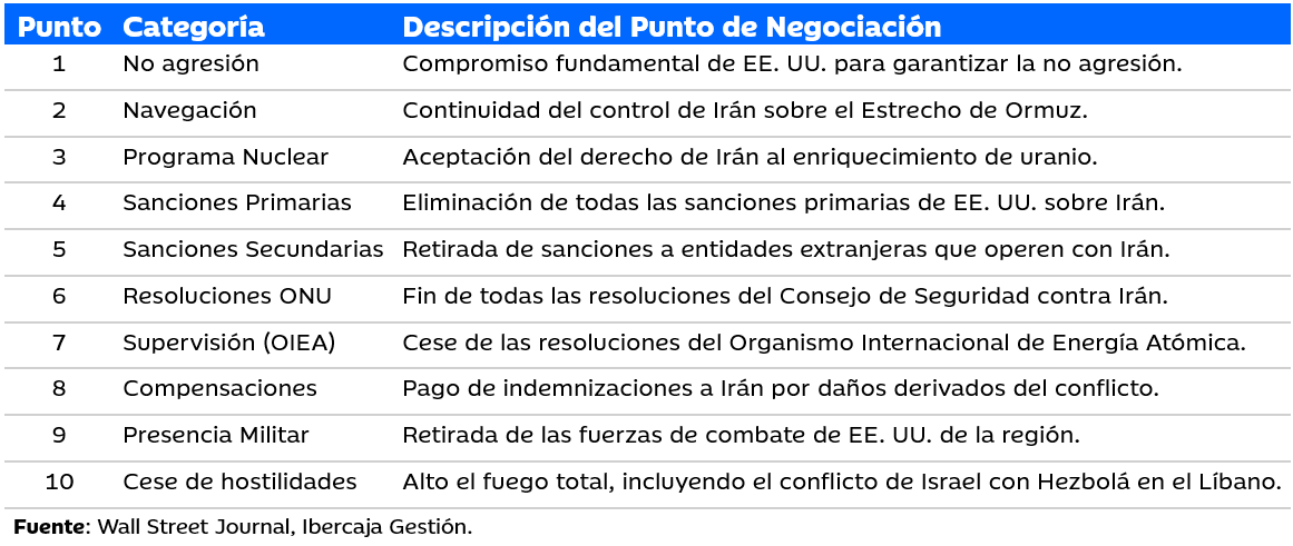 Tabla 1: Los 10 “mandamientos” que propone Irán