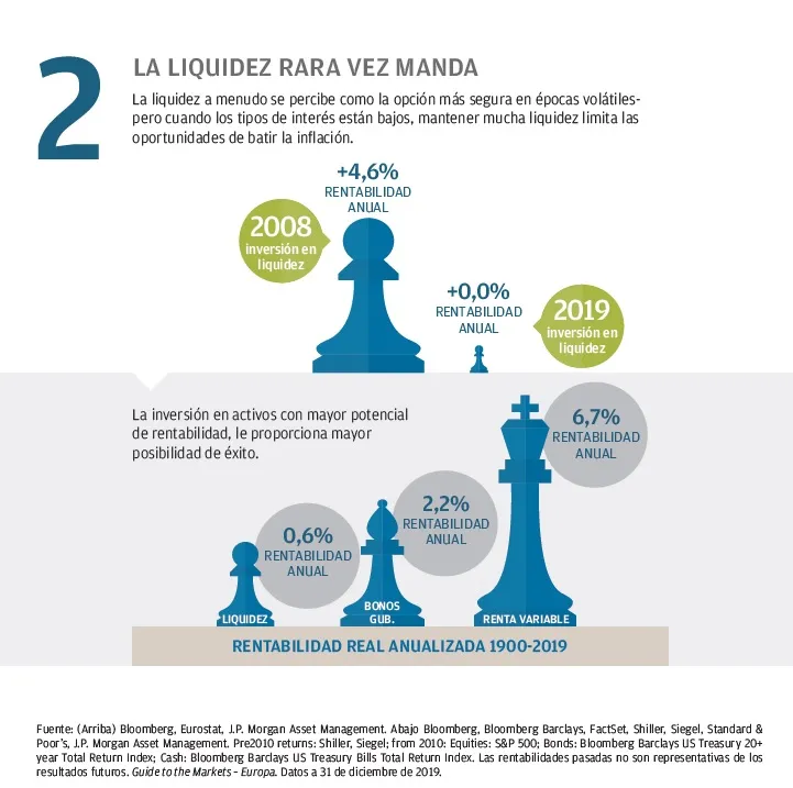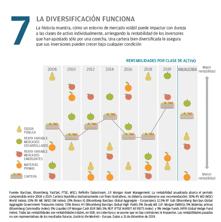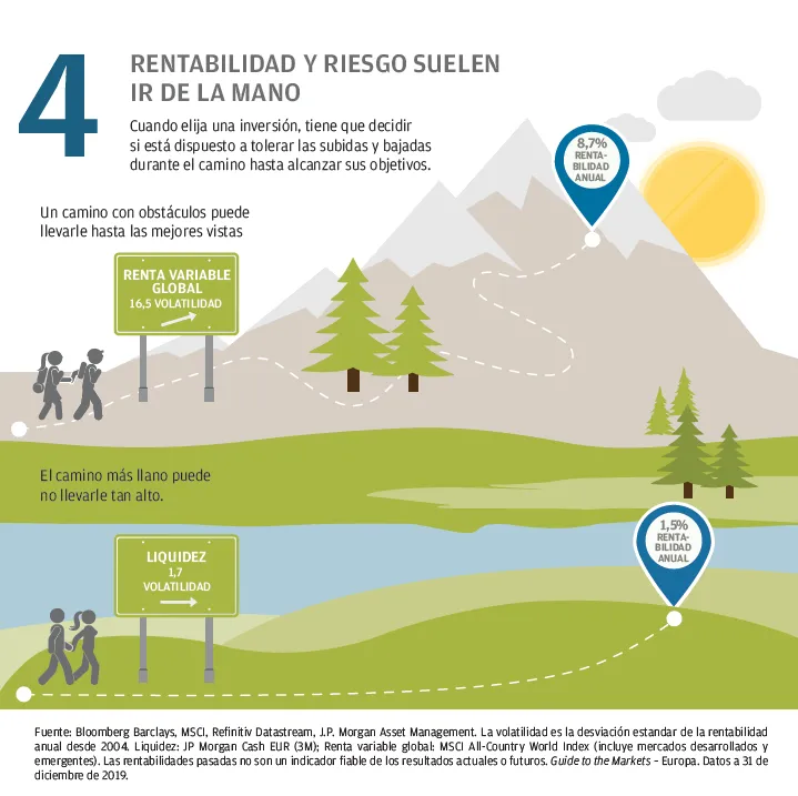 Este documento constituye una comunicación general y se facilita para fines exclusivamente informativos. Tiene carácter educativo y no debe ser considerado como asesoramiento o recomendación sobre ningún producto, estrategia, característica de plan o para otros fines en ninguna jurisdicción. Tampoco constituye un compromiso por parte de J.P. Morgan Asset Management o sus filiales de participar en las operaciones mencionadas en este documento. Los ejemplos utilizados tienen carácter genérico o hipotético, y se facilitan exclusivamente con fines ilustrativos. Este material no contiene información suficiente para apoyar una decisión de inversión y no debería ser tomado como referencia para evaluar las ventajas de invertir en cualquier valor o producto. Asimismo, los usuarios deben evaluar de manera independiente las consecuencias legales, reglamentarias, fiscales, crediticias y contables, y determinar, junto con sus propios asesores profesionales, si alguna de las inversiones aquí mencionadas se considera adecuada para alcanzar sus objetivos personales. Los inversores deben velar por obtener toda la información pertinente que se encuentre disponible antes de realizar una inversión. Las previsiones, cifras, opiniones o técnicas y estrategias de inversión aquí reflejadas se ofrecen exclusivamente para fines informativos, sobre la base de ciertos supuestos y condiciones actuales de mercado, y están sujetas a cambios sin previo aviso. Toda información aquí contenida se considera exacta en el momento de su preparación. Sin embargo, no puede garantizarse su exactitud y no se acepta responsabilidad alguna en relación con cualquier error u omisión. Cabe señalar que la inversión conlleva riesgos, que el valor de las inversiones y las rentas que estas generan pueden fluctuar en función de las condiciones del mercado y los convenios en materia tributaria, y que los inversores podrían no recuperar todo el dinero invertido. La rentabilidad y los rendimientos históricos no constituyen una indicación fiable de los resultados actuales y futuros.