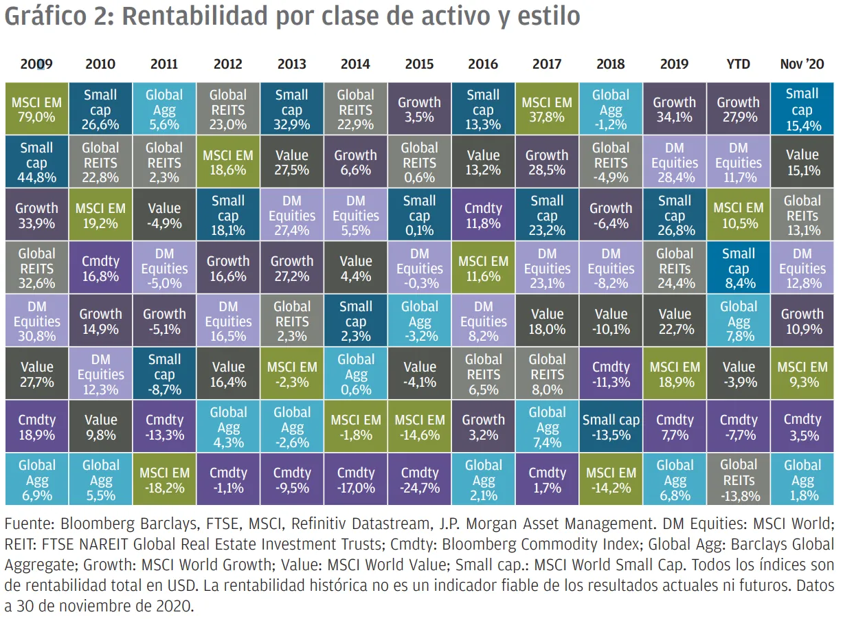 Los activos más y menos rentables en noviembre de 2020 y en la última década