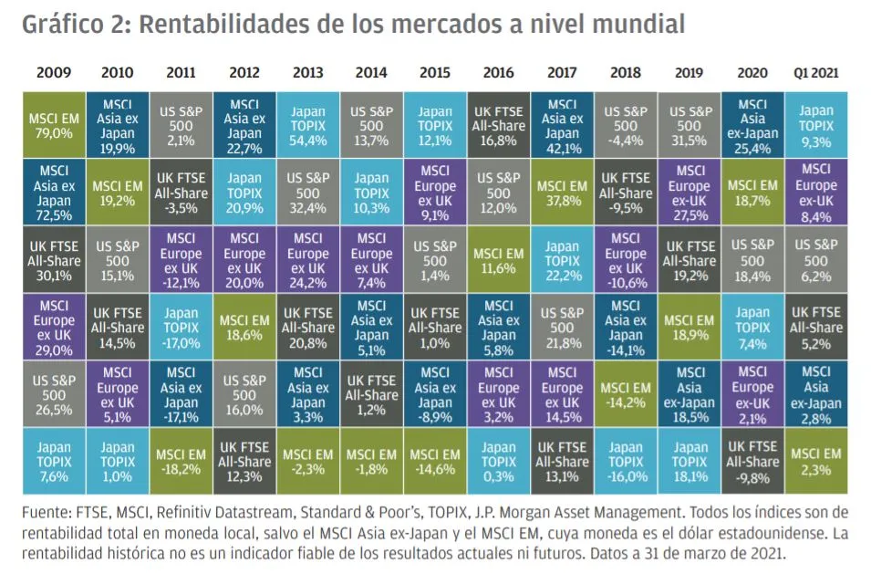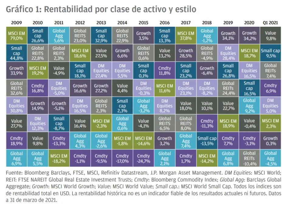 Los activos más y menos rentables en el primer trimestre de 2021 y en la última década