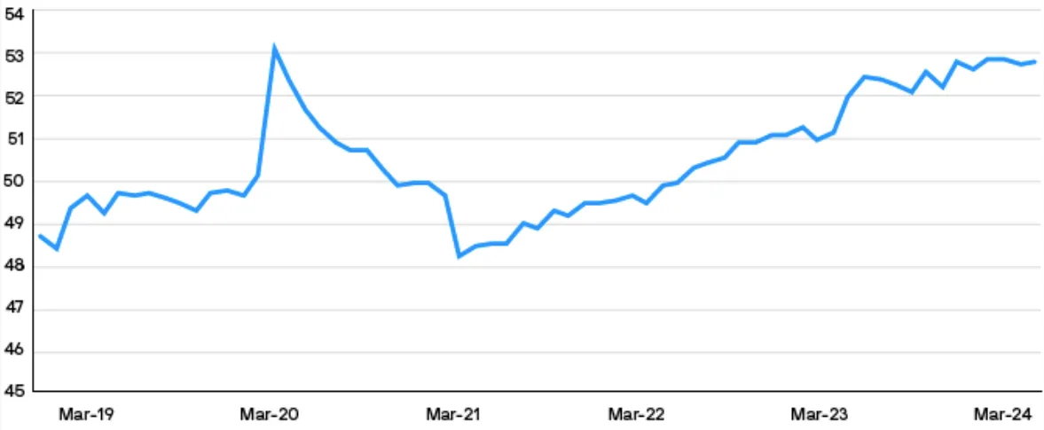 Los fundamentales resilientes ayudan a justificar las valoraciones ajustadas de los bonos investment grade, donde los diferenciales han seguido estrechándose cuando se analiza el índice ICE BofA US Corporate. Desde cerca de 100 puntos básicos (pb) a principios de 2024, los diferenciales de los activos investment grade se sitúan actualmente en 86 pb, a solo 6 pb de los niveles más ajustados que hemos experimentado en los últimos cinco años. Si se analizan aterrizajes económicos suaves históricamente similares, los diferenciales se negociaron en un rango estrecho de 60 pb-80 pb en 1994-1995, lo que proporciona evidencia de un posible ajuste futuro. Además, los sólidos fundamentales han generado un fuerte viento de cola en la calificación crediticia para la clase de activo, con más mejoras que rebajas de calificaciones en los primeros cinco meses del año que las que experimentamos en todo 2023. Así pues, el 53% del índice presenta ahora una calificación de A o mejor, frente al 48% de 2021, lo que supone un mercado de mejor calidad con estas valoraciones más ajustadas. Hay que recordar también que numerosos inversores se fijan en que las rentabilidades totales todavía se encuentran en niveles muy atractivos, en torno al 5,5%.