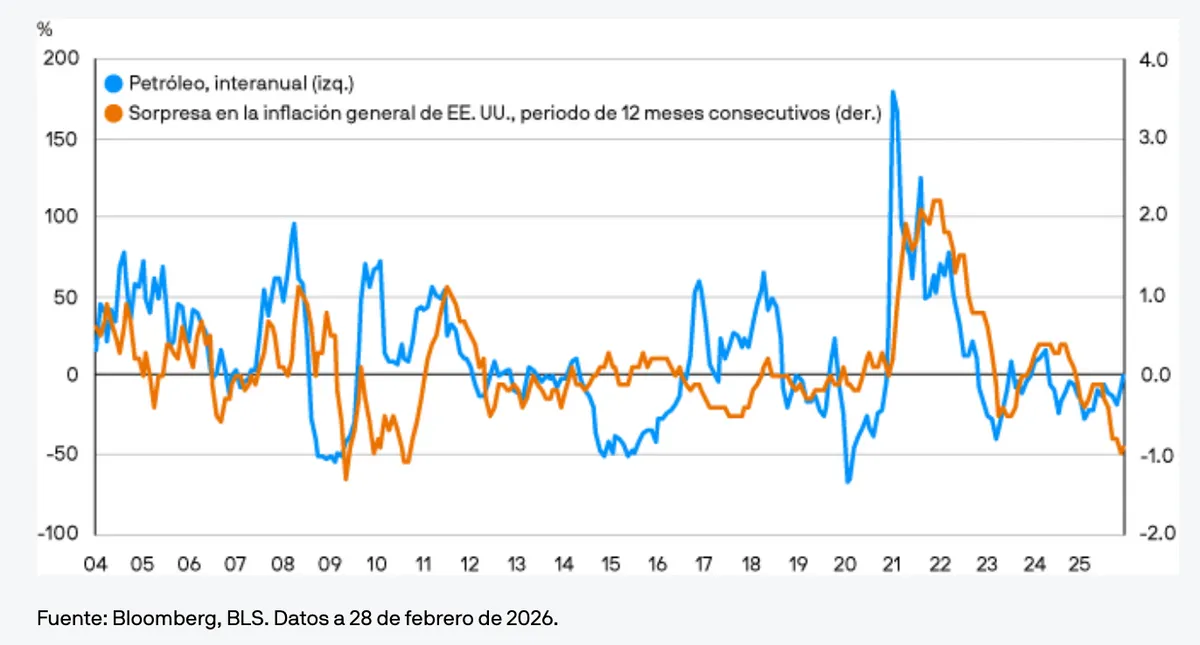 Durante el pasado fin de semana, estalló un conflicto devastador en Oriente Medio tras el aumento de las tensiones entre Estados Unidos, Israel e Irán. Para los mercados, el impacto más obvio en el corto plazo ha sido el aumento de los precios de la energía. A 5 de marzo de 2025, el petróleo Brent se encontraba en 80 USD por barril tras situarse en 70 USD la semana anterior, mientras que los precios del gas natural en Europa y el Reino Unido han aumentado más del 50% desde el 27 de febrero de 2026. En los mercados de tipos, los bonos soberanos de Oriente Medio se negociaban con diferenciales entre 5 y 30 puntos básicos más altos. Las curvas de los mercados desarrollados en general han registrado un aplanamiento bajista por el aumento de los precios de la energía y el impacto que ello puede suponer para la inflación; la continua incertidumbre en los mercados conlleva el riesgo de que los bancos centrales pausen los recortes de tipos de interés por más tiempo, lo cual los ha llevado a corregir las previsiones para el corto plazo. Los diferenciales de los bonos soberanos de los mercados desarrollados, como Italia, España, Francia y Reino Unido, se han ampliado, al igual que los diferenciales en los mercados corporativos 'investment grade' y 'high yield', aunque las variaciones han sido modestas. La reacción inversora hasta el momento sugiere que los mercados están descontando un conflicto relativamente contenido. Sin embargo, siguen existiendo riesgos de cola importantes, entre ellos, el cierre del estrecho de Ormuz, por donde transita el 20% del petróleo mundial, precios elevados prolongados del petróleo y el gas, y una posible estanflación si las perturbaciones para las materias primas se combinan con efectos negativos en la demanda. Por tanto, dos variables impulsarán el relato macroeconómico y del mercado a corto plazo: la duración del conflicto y durante cuánto tiempo (o en qué medida) el estrecho de Ormuz estará cerrado o registrará interrupciones en el tránsito. Un episodio contenido que deje los flujos de energía en gran medida intactos es probable que genere una presión inflacionaria temporal que los responsables de política monetaria puedan pasar por alto. Una interrupción prolongada del tránsito de petróleo y gas natural licuado (GNL) aumenta la probabilidad de que la crisis de los precios de la energía persista durante el tiempo suficiente como para repercutir en los datos generales de inflación, lo que complicaría la tendencia a la desinflación en la que han confiado los bancos centrales.