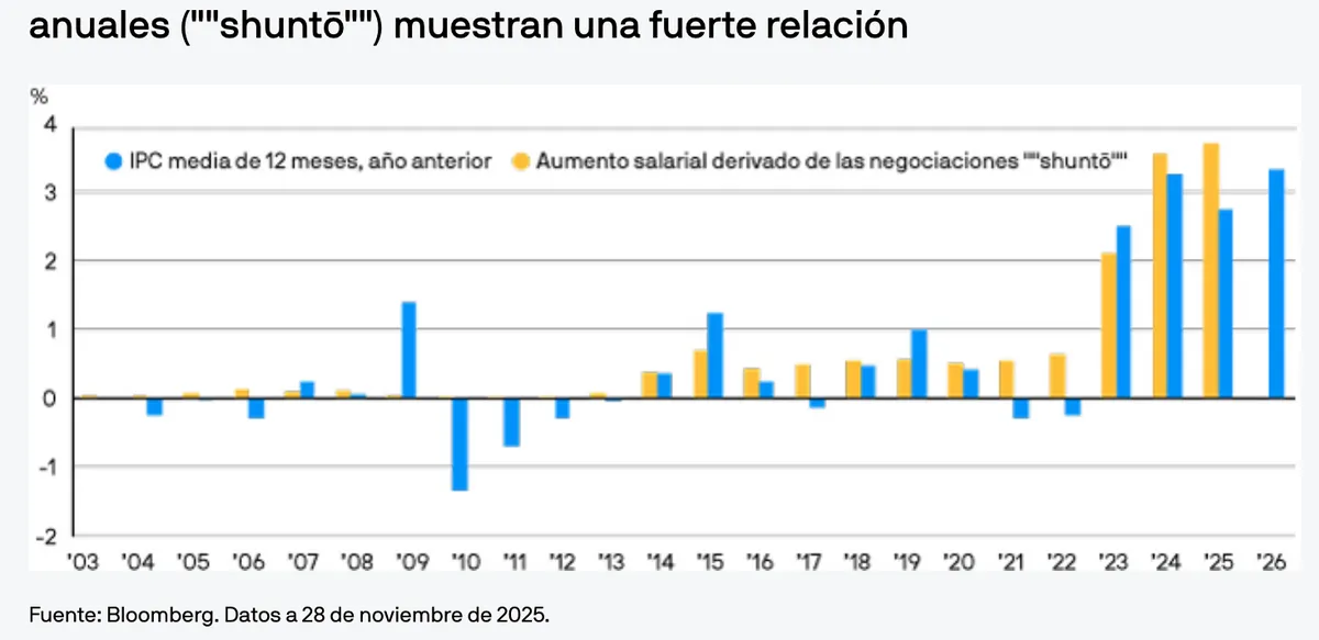Históricamente, la inflación japonesa y los resultados de las negociaciones salariales
