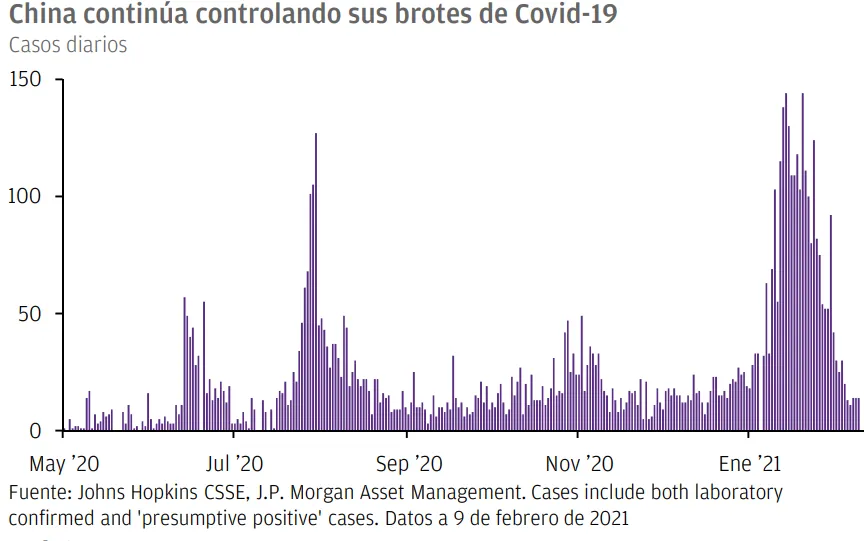 En contraste con el mundo occidental, donde las infecciones por Covid-19 se mantienen muy altas, la estrategia de contención de China continúa siendo exitosa. El brote reciente en China aumentó los casos a su punto más alto desde mayo, pero la rápida respuesta del gobierno ha conseguido mitigarlo. El éxito continuado en su estrategia está permitiendo a China reabrir su economía de un modo que no han conseguido Europa y EE.UU, logrando una verdadera recuperación en forma de “V”, como demuestran los datos de PIB recientes. Dada la resiliencia económica relativa de China, el estímulo monetario no ha sido tan fuerte como el de los demás mercados desarrollados en el último año. El resultado para los inversores es que la deuda soberana China en moneda local ofrece yields mayores que la de varios países desarrollados, además de mostrar poca correlación con respecto a la renta variable.