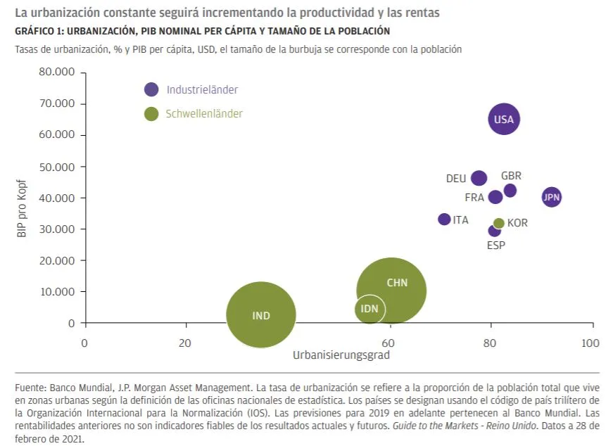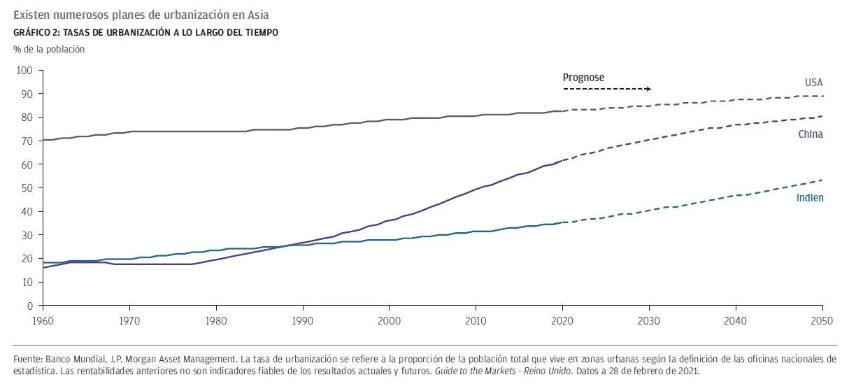 Las favorables tendencias de urbanización y el rápido crecimiento de la clase media sentarán las bases de un sólido crecimiento en la región. Una contención más efectiva de la pandemia y una respuesta más moderada en términos de política monetaria permiten que los inversores accedan a tires de bonos mayores, así como a un potencial de crecimiento de los beneficios superior en el ámbito de la renta variable, a unas valoraciones más razonables que en ningún otro lugar del mundo.