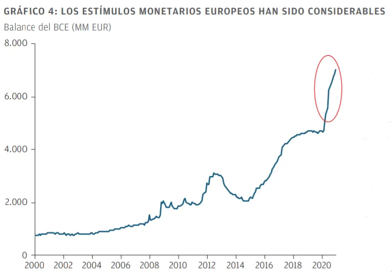 El Banco Central Europeo (BCE) ha seguido superando los compromisos contraídos al ampliar el horizonte de sus programas de estímulo monetario. Dado que los niveles de inflación son estructuralmente bajos, prevemos que el BCE seguirá ampliando estos programas a lo largo de 2021.