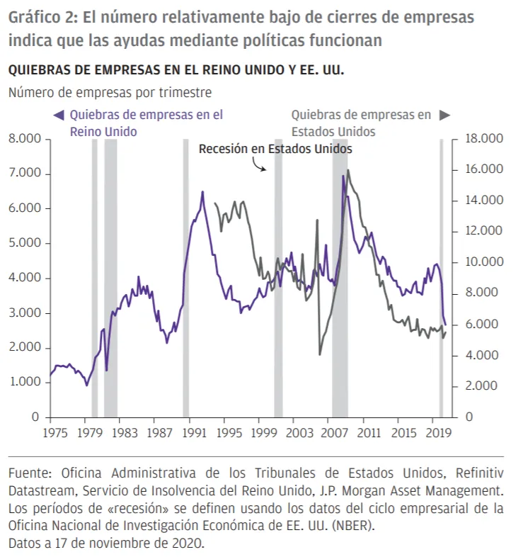 económica, el desempleo ha aumentado de manera relativamente modesta en Europa y ha registrado un acusado descenso en Estados Unidos. Las empresas que han cerrado también han sido menos de las que se podría haber previsto.