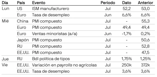 Según lo espeardo, la Reserva Federal (Fed) subió los tipos 75 puntos básicos en su reunión de julio, el segundo aumento consecutivo de esta magnitud. El rango de tipos es ahora del 2,25 % -2,50 %, que la Fed considera como neutral. El comité espera que los nuevos aumentos este año lleven la política a un territorio restrictivo. El presidente Powell subrayó que, en el futuro, la toma de decisiones de la Fed dependerá de los datos. Esto le da margen para responder a sorpresas alcistas o bajistas en los datos económicos. La determinación del comité de ver una caída de la inflación, junto con el retraso inherente a la política monetaria, implica que existe el riesgo de que la Fed esté infravalorando los crecientes obstáculos para el crecimiento. El mercado ya descuenta esa posibilidad, con recortes de tipos de interés previstos para 2023.