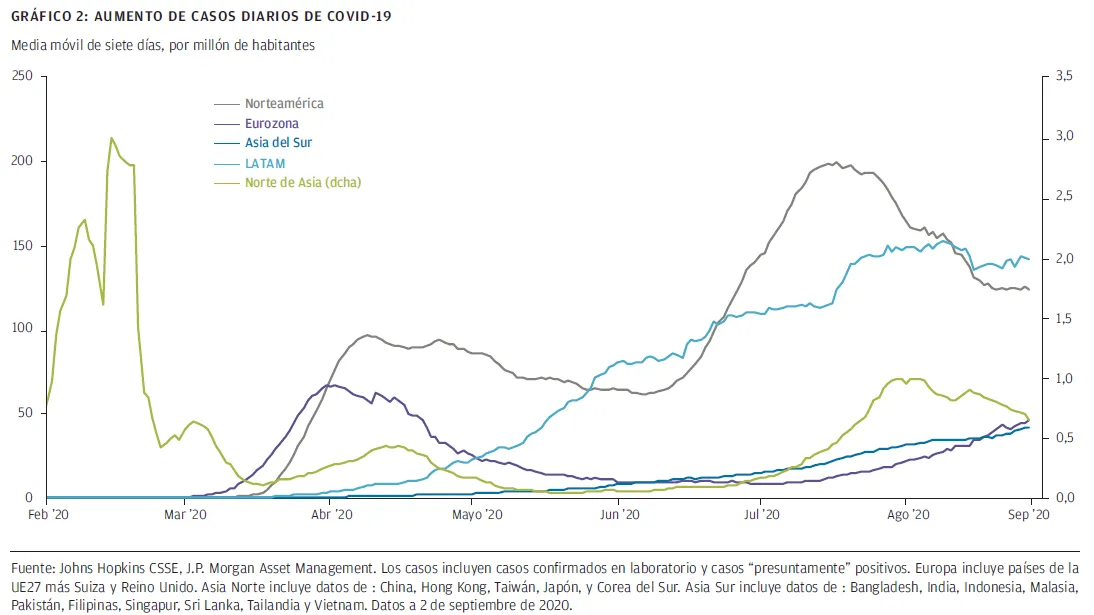 Teniendo en cuenta que las segundas oleadas del virus cada vez son más evidentes, parece que hasta que aparezca una vacuna la vida no podrá volver de verdad a la normalidad. En ese momento podríamos asistir a una rotación desde los valores en las regiones tecno céntricas, como EEUU, hacia Europa y ME.