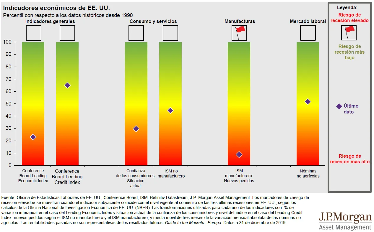 Este documento constituye una comunicación general y se facilita para fines exclusivamente informativos. Tiene carácter educativo y no debe ser considerado como asesoramiento o recomendación sobre ningún producto, estrategia, característica de plan o para otros fines en ninguna jurisdicción. Tampoco constituye un compromiso por parte de J.P. Morgan Asset Management o sus filiales de participar en las operaciones mencionadas en este documento. Los ejemplos utilizados tienen carácter genérico o hipotético, y se facilitan exclusivamente con fines ilustrativos. Este material no contiene información suficiente para apoyar una decisión de inversión y no debería ser tomado como referencia para evaluar las ventajas de invertir en cualquier valor o producto. Asimismo, los usuarios deben evaluar de manera independiente las consecuencias legales, reglamentarias, fiscales, crediticias y contables, y determinar, junto con sus propios asesores profesionales, si alguna de las inversiones aquí mencionadas se considera adecuada para alcanzar sus objetivos personales. Los inversores deben velar por obtener toda la información pertinente que se encuentre disponible antes de realizar una inversión. Las previsiones, cifras, opiniones o técnicas y estrategias de inversión aquí reflejadas se ofrecen exclusivamente para fines informativos, sobre la base de ciertos supuestos y condiciones actuales de mercado, y están sujetas a cambios sin previo aviso. Toda información aquí contenida se considera exacta en el momento de su preparación. Sin embargo, no puede garantizarse su exactitud y no se acepta responsabilidad alguna en relación con cualquier error u omisión. Cabe señalar que la inversión conlleva riesgos, que el valor de las inversiones y las rentas que estas generan pueden fluctuar en función de las condiciones del mercado y los convenios en materia tributaria, y que los inversores podrían no recuperar todo el dinero invertido. La rentabilidad y los rendimientos históricos no constituyen una indicación fiable de los resultados actuales y futuros.