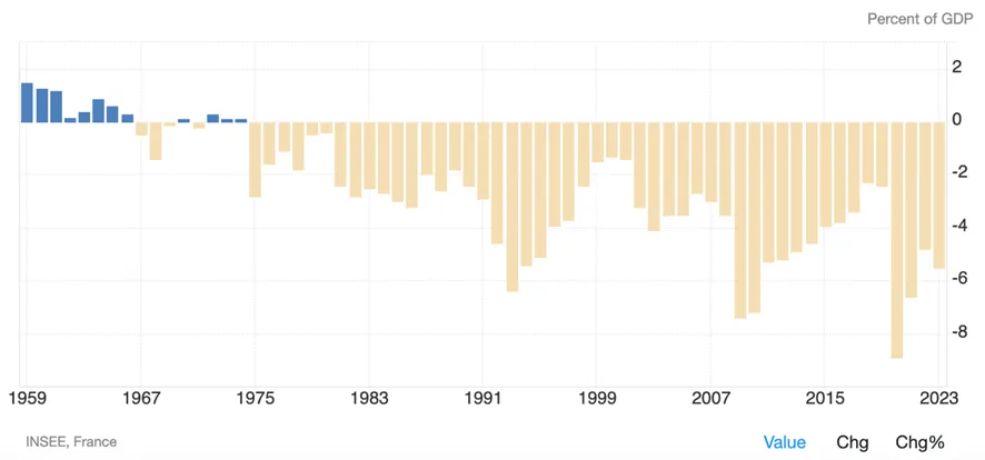 El déficit de 2024 será superior al previsto y alcanzará el 6% sobre PNB (fuente gobierno francés).