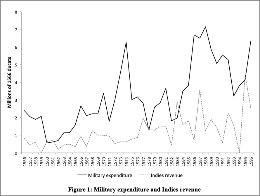 Gastos militares e ingreso de las Indias (reinado de Felipe II), (Mauricio Drelichman & Hans-Joachim Voth Paper 2008)